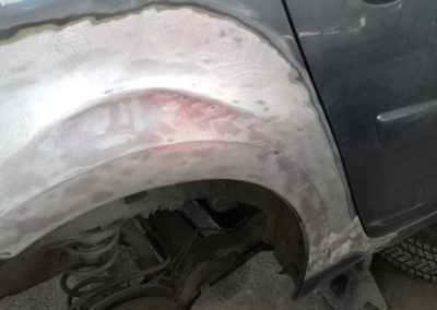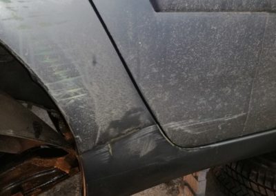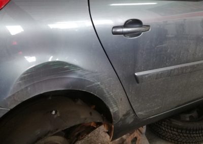 Tym naprawy wymagał błotnik i drzwi. Zostały one naprawione bez wymiany na nowe. Zadanie zostało wykonane przy pomocy sprottera poprzez prostowanie. Następnie cynowanie, podkład antykorozyjny epoxydowy, akrylowy i na koniec nowa powłoka lakiernicza.
